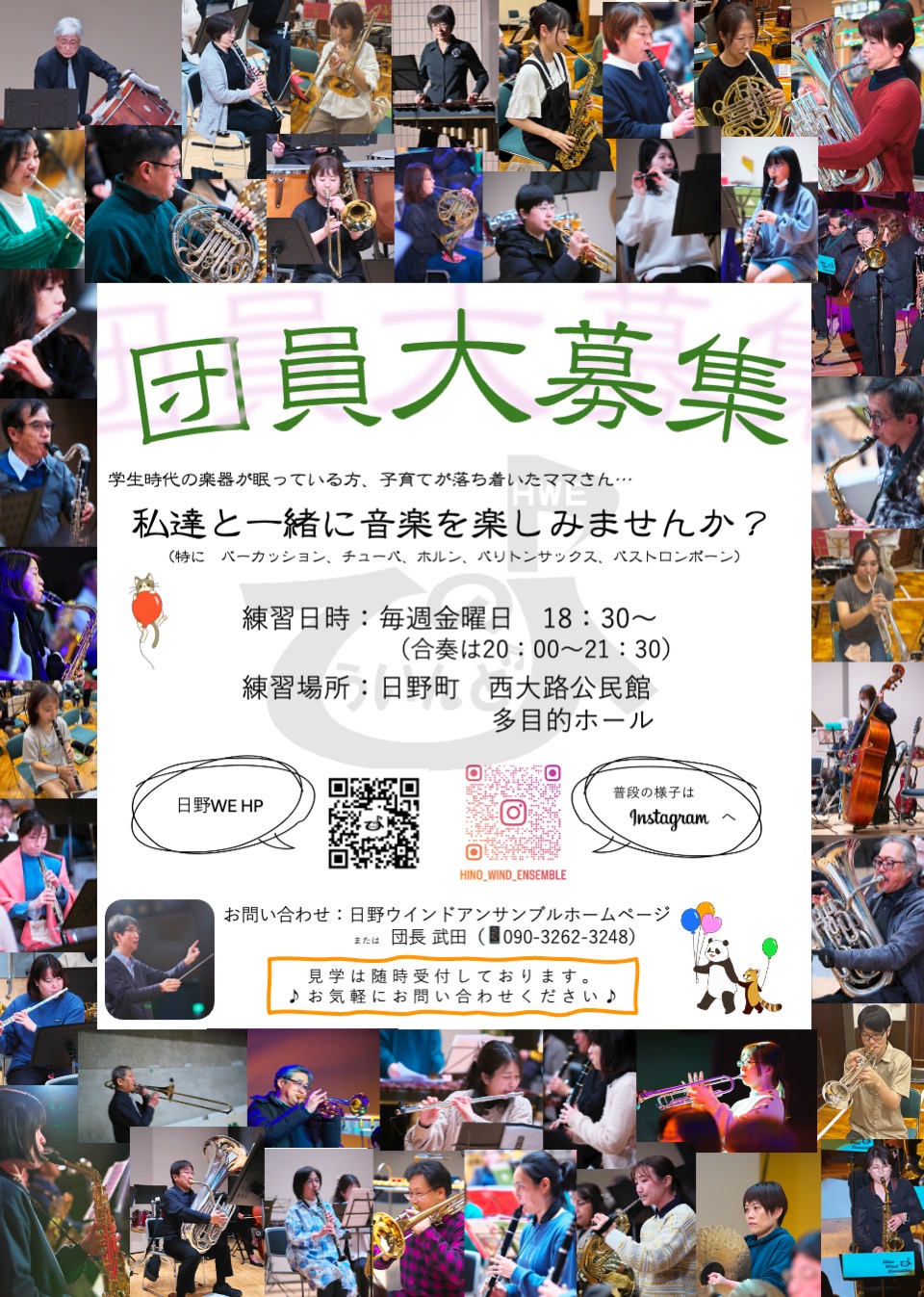 『日野ウインド』に参加してみたいな・・・ と思われた方、まずはこちらにご連絡下さい。 練習見学等のご案内をさせて頂きます。 |